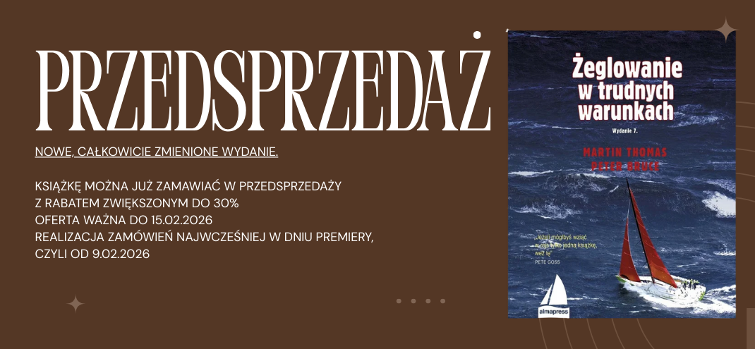 Witamy w internetowym sklepie wydawnictwa Alma-Press – miejscu, gdzie pasja spotyka się z wiedzą. Od lat zajmujemy się publikacją i dystrybucją książek dla miłośników żeglarstwa, entuzjastów historii oraz osób poszukujących sprawdzonych poradników. Naszą misją jest dostarczanie treści, które inspirują, edukują i towarzyszą w codziennych i niecodziennych przygodach.
