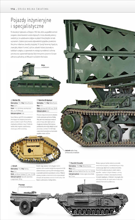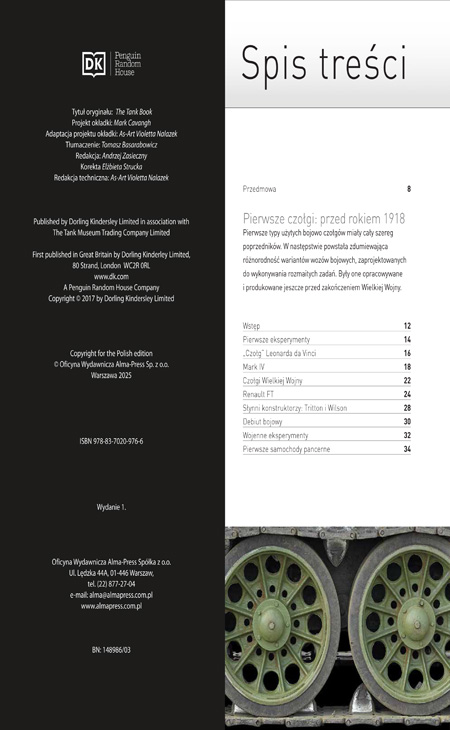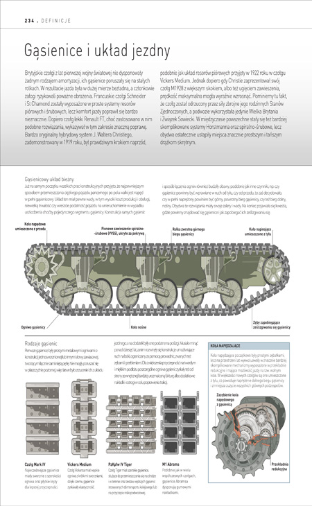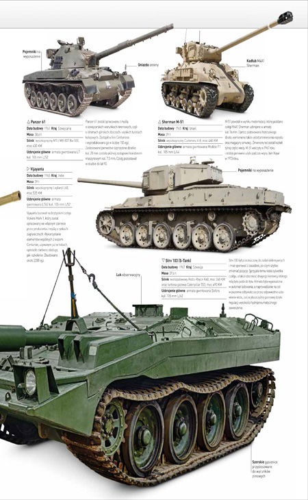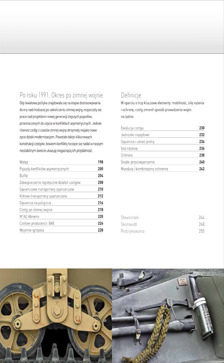 W księdze czołgów śledzimy ewolucję najskuteczniejszych i najbardziej rozpoznawalnych wozów bojowych w dziejach, a całość okraszona jest szczegółowymi ilustracjami. Omówionych zostało przeszło 400 typów czołgów i innych pojazdów pancernych, a także wiele rodzajów uzbrojenia oraz postacie najważniejszych konstruktorów. Niniejsza praca jest zatem niezastąpionym przewodnikiem po burzliwej historii wozów bojowych.
