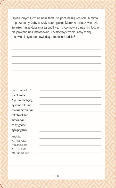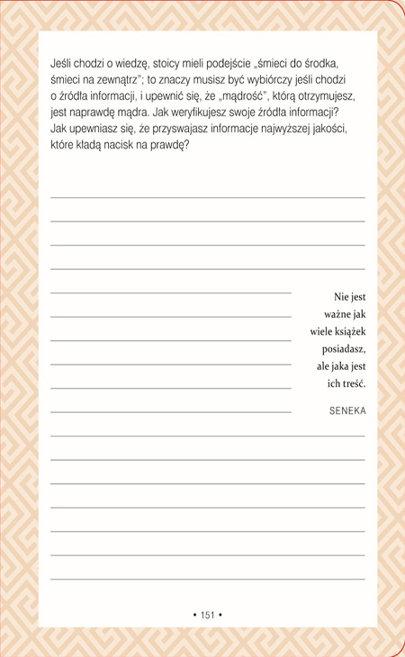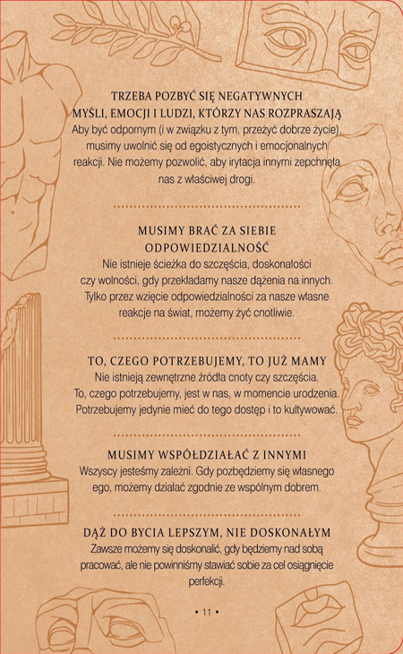 Wykorzystując ćwiczenia i proponowane tematy do rozważań, rozwiniesz umiejętności potrzebne do prowadzenia życia, które stoicy nazywali cnotliwym i dobrze przeżytym.