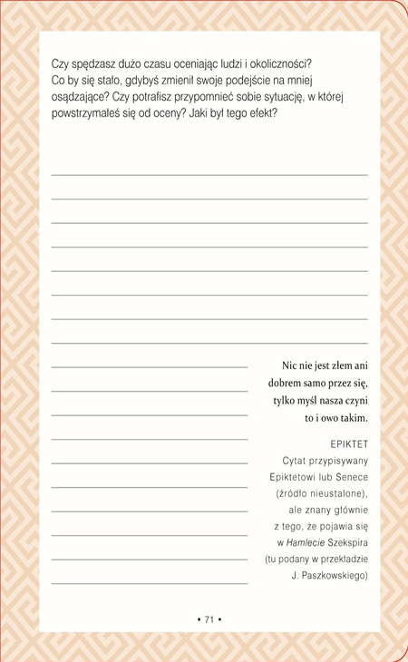 KORZYSTAJ Z MĄDROŚCI STAROŻYTNYCH z tym praktycznym zeszytem ćwiczeń, zawierającym ponad 100 unikalnych zadań opisowych wraz z podpowiedziami, uzupełnionymi o inspirujące cytaty.