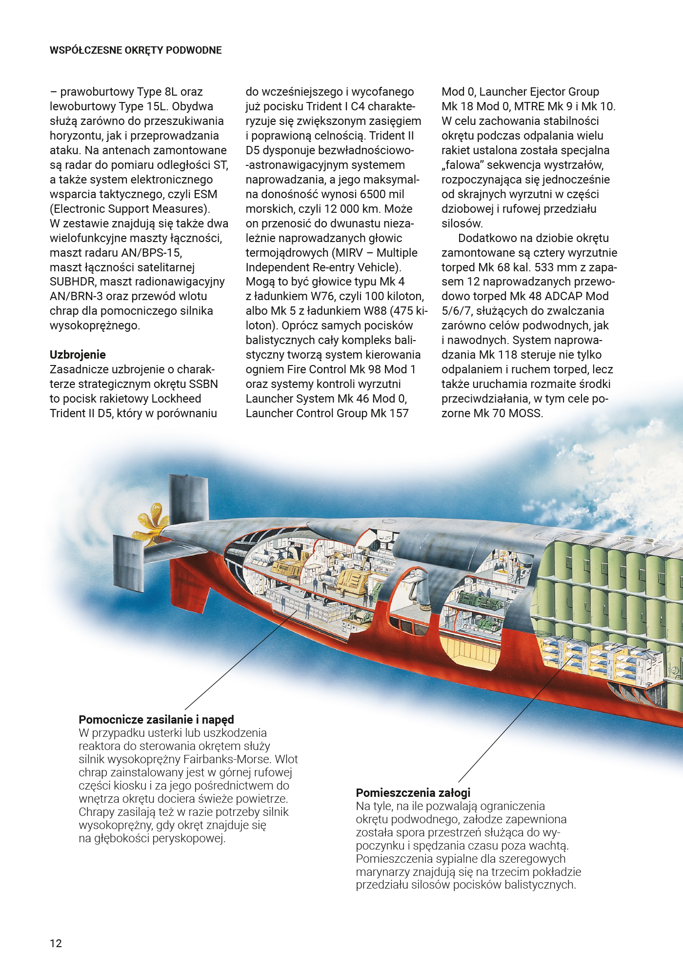 Okręty podwodne stanowią istotny element współczesnej wojny morskiej, umożliwiając flotom wojennym przeprowadzanie ataków rakietowych z dowolnego miejsca na świecie. Książka Współczesne okręty podwodne uporządkowana jest według typów i jest zwięzłym przewodnikiem po najważniejszych okrętach podwodnych wykorzystywanych obecnie na świecie.