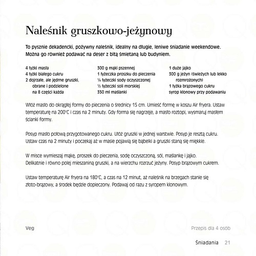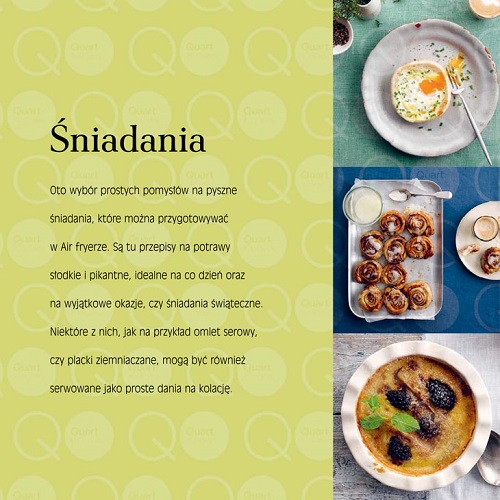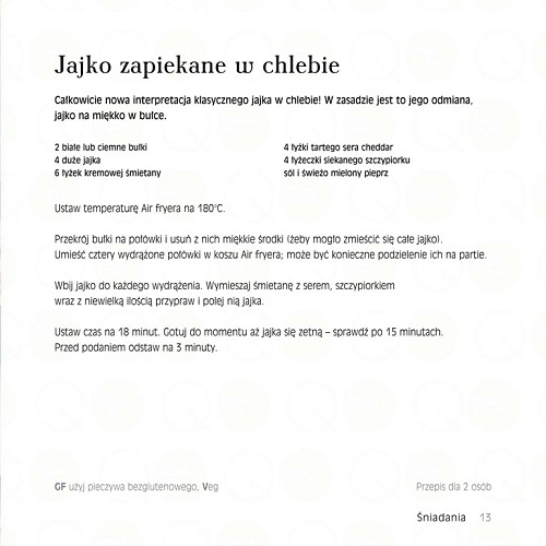W książce zawarte są ekscytujące przepisy na każdy gust. Znajdziesz tu szeroki wybór dań od kurczaka, jagnięciny, małży i kalmarów po tofu, mufflinki, ciasta czekoladowe, przez chrupiące spiralki ziemniaczane, pieczone brokuły i kolby kukurydzy. Dowiesz się jak korzystać ze swojego Air fryera w sposób najbardziej efektywny.